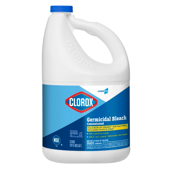 Concentrated Germicidal Bleach, Regular, 121 oz Bottle, 3/Carton
