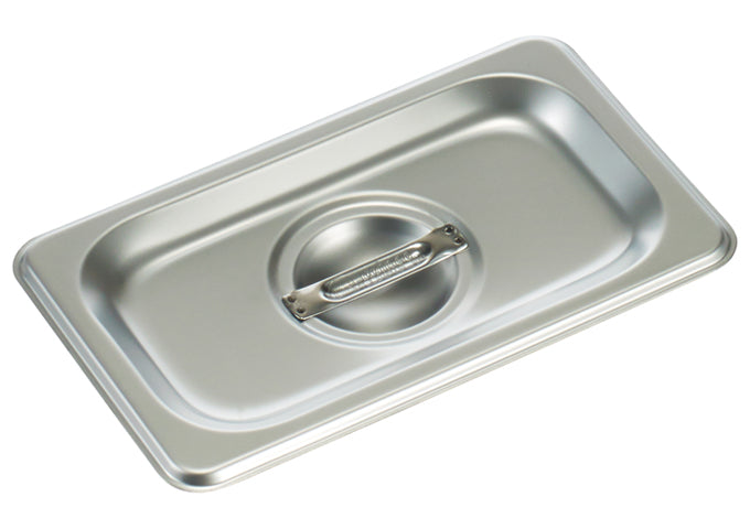Steam Table Pan Cover, 1/9 size, solid, with handle, 25-gauge standard weight, 18/8 stainless steel, NSF